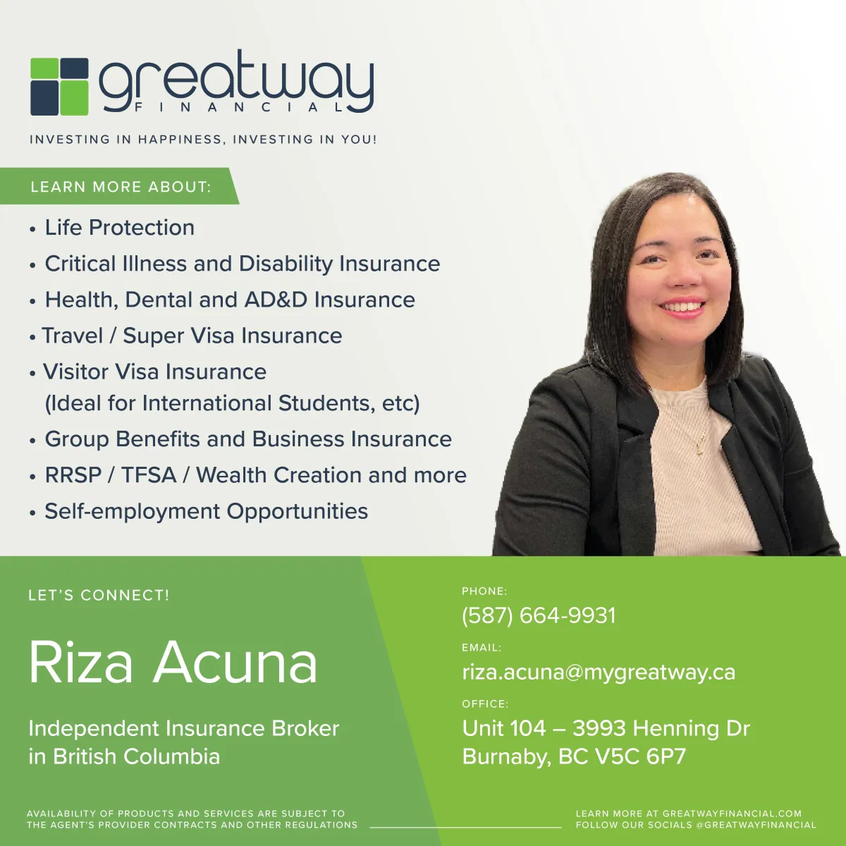Your dedicated insurance advisor. As your life evolves, it’s important to ensure that your insurance coverage evolves with it. I’m here to help you navigate these changes and keep your financial future secure.